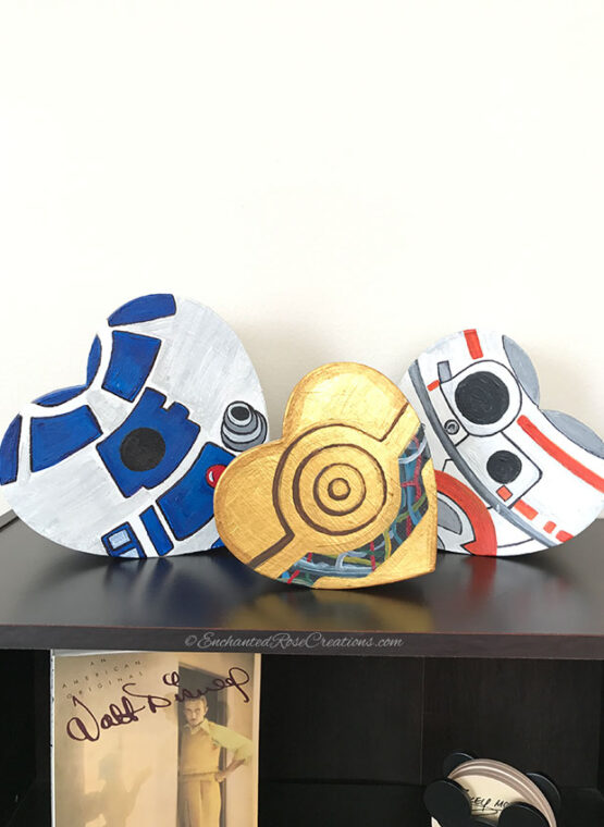 These are hand painted and custom created Star Wars inspired trinket boxes. These droids (BB8, R2D2, and C3PO) are sold as a set and are made from paper mache, making for great display pieces for any Star Wars fan. These boxes are small, medium and large and they fit nicely inside each other.