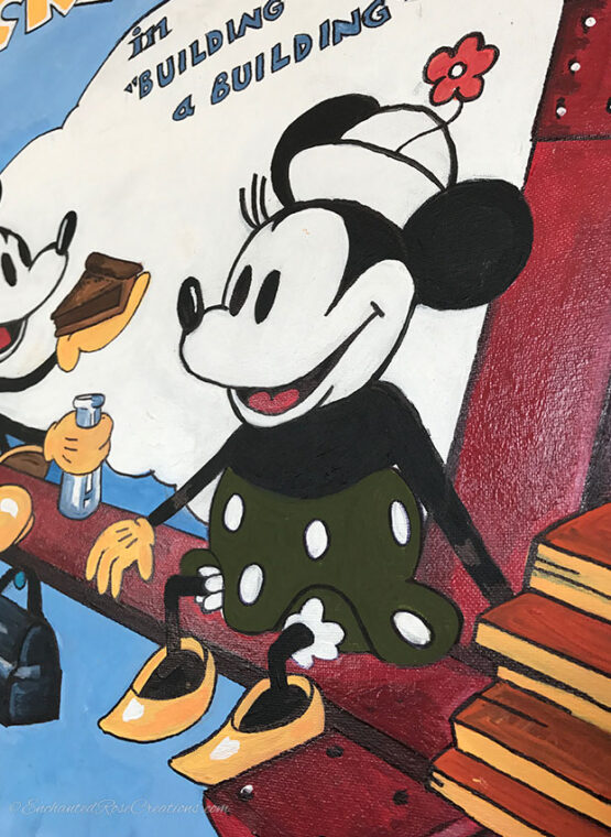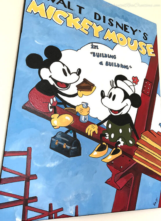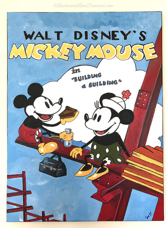 This handmade painting is from Walt Disney’s Building a Building theatrical release poster in 1933. Perfect for any Mickey and Minnie fan who appreciates the classics!